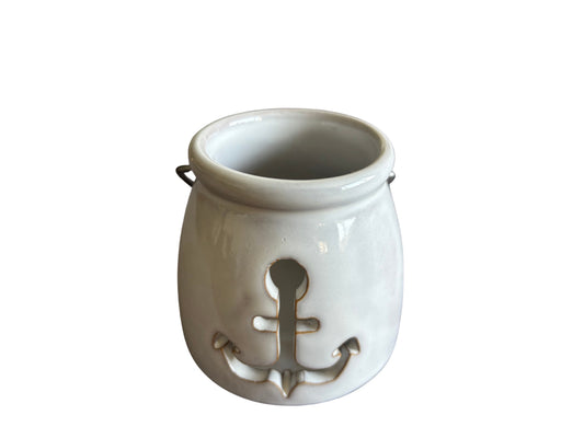 Nautical Ceramic Tealight Holder with Anchor Cut-Out – Candle Cup Holder Coastal Home Decor, 8.2 cm