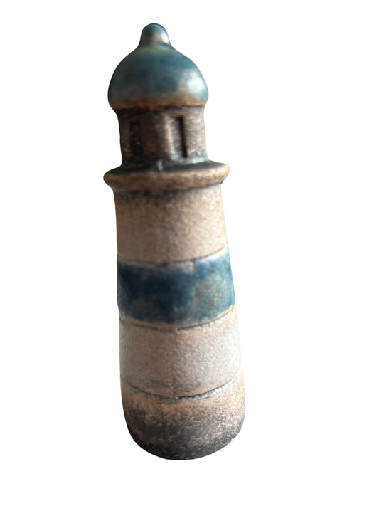 Rustic Ceramic Lighthouse Ornament – Coastal Blue & Beige Nautical Decor, 10.2 cm