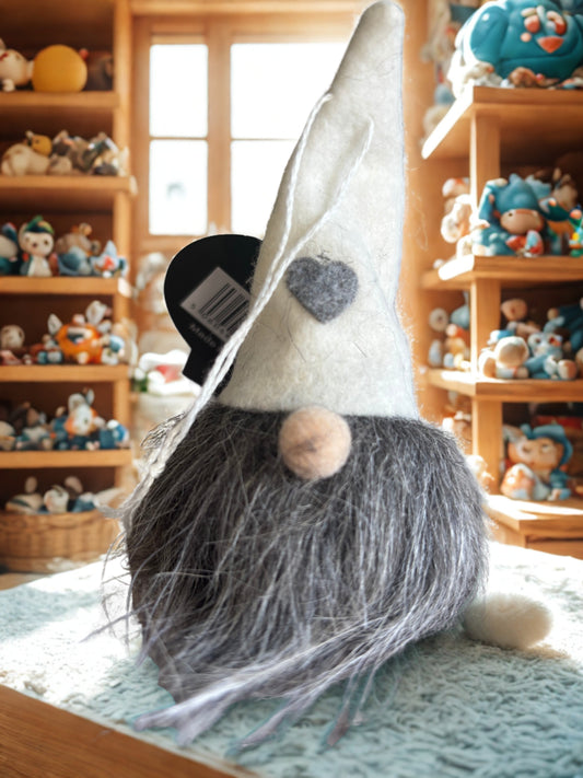 Winter Gonk Decoration – White & Grey Plush Christmas Gnome 16cm