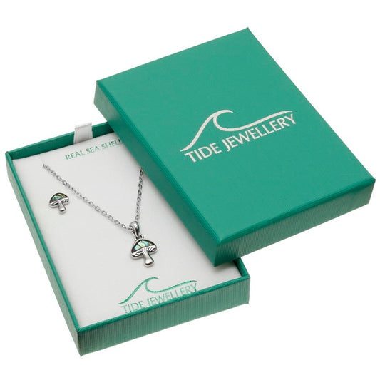 Mushroom Jewellery Set – Paua Shell Necklace & Earrings by Tide