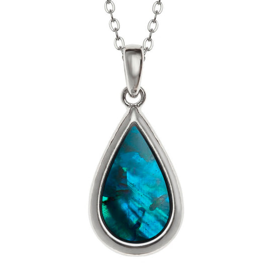 Blue Teardrop Necklace – Paua Shell Pendant on Trace Chain