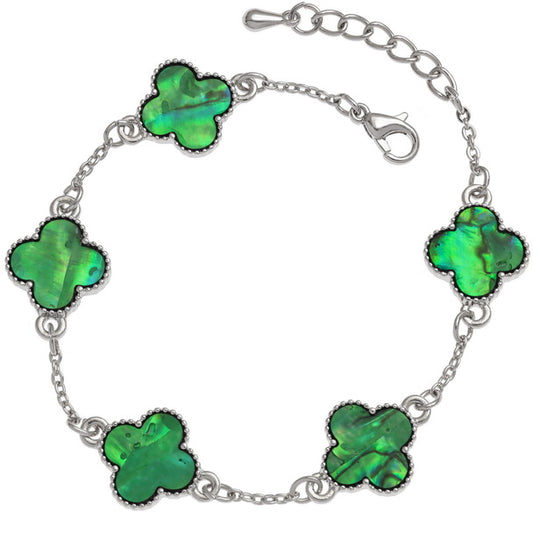 Blue Quatrefoil Bracelet – Mother of Pearl Shell, Adjustable Length