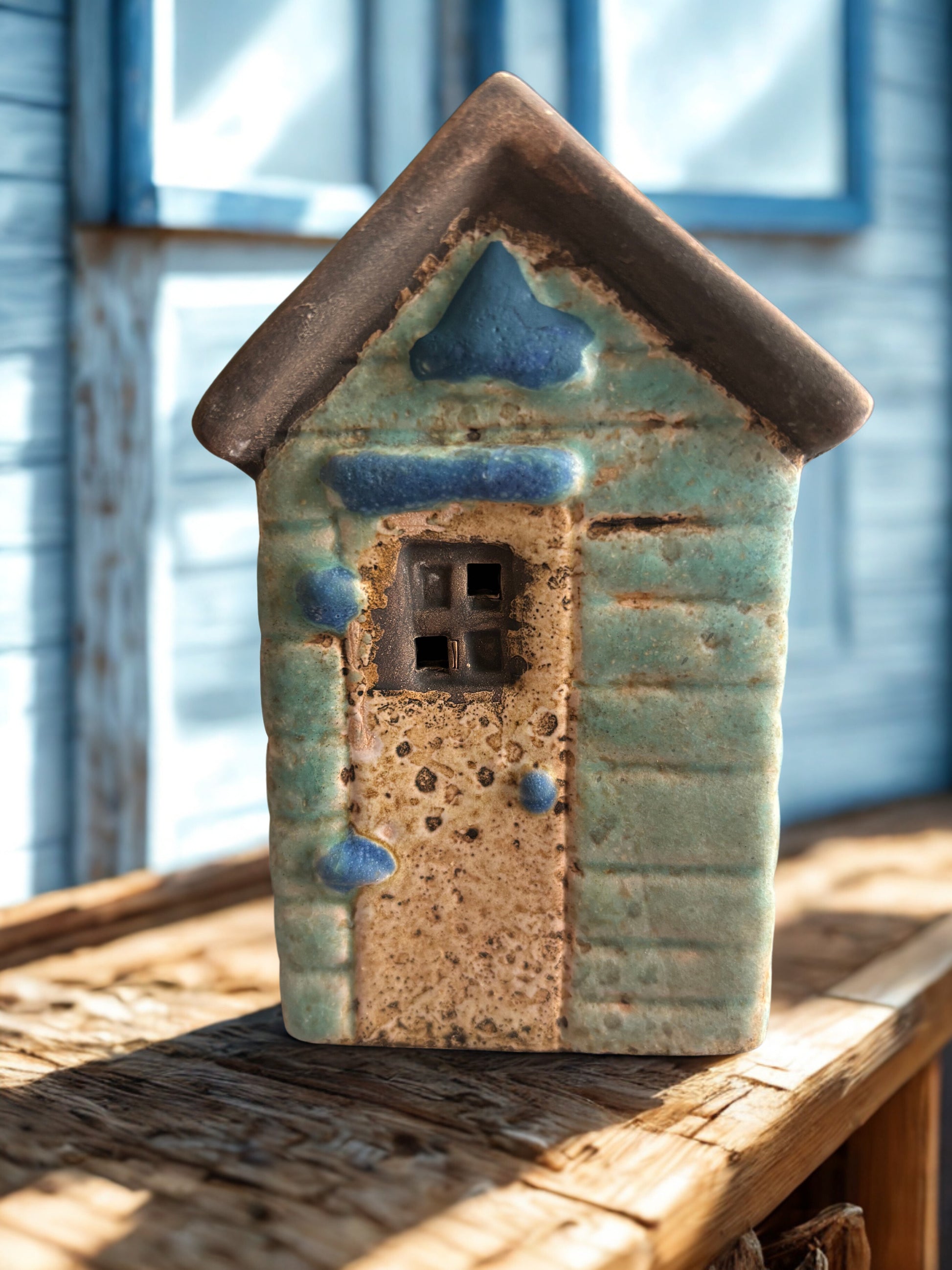 LED Ceramic Beach Hut Lighthouse Ornament – Coastal Home Decor with Light, 11.7 cm