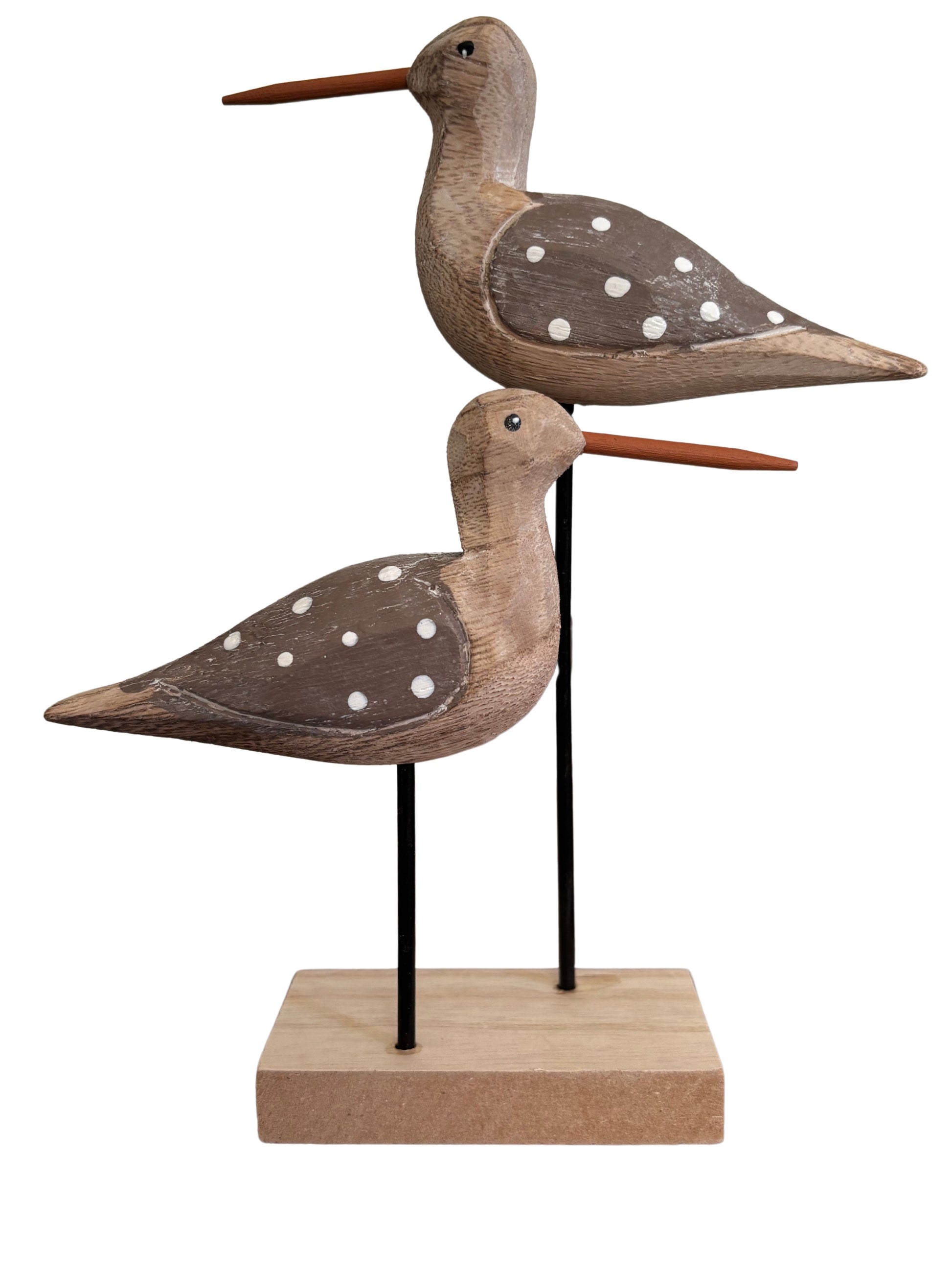 Rustic Wooden Shorebirds Ornament – Spotty Coastal Bird Figurine, Portland Living 20.5cm