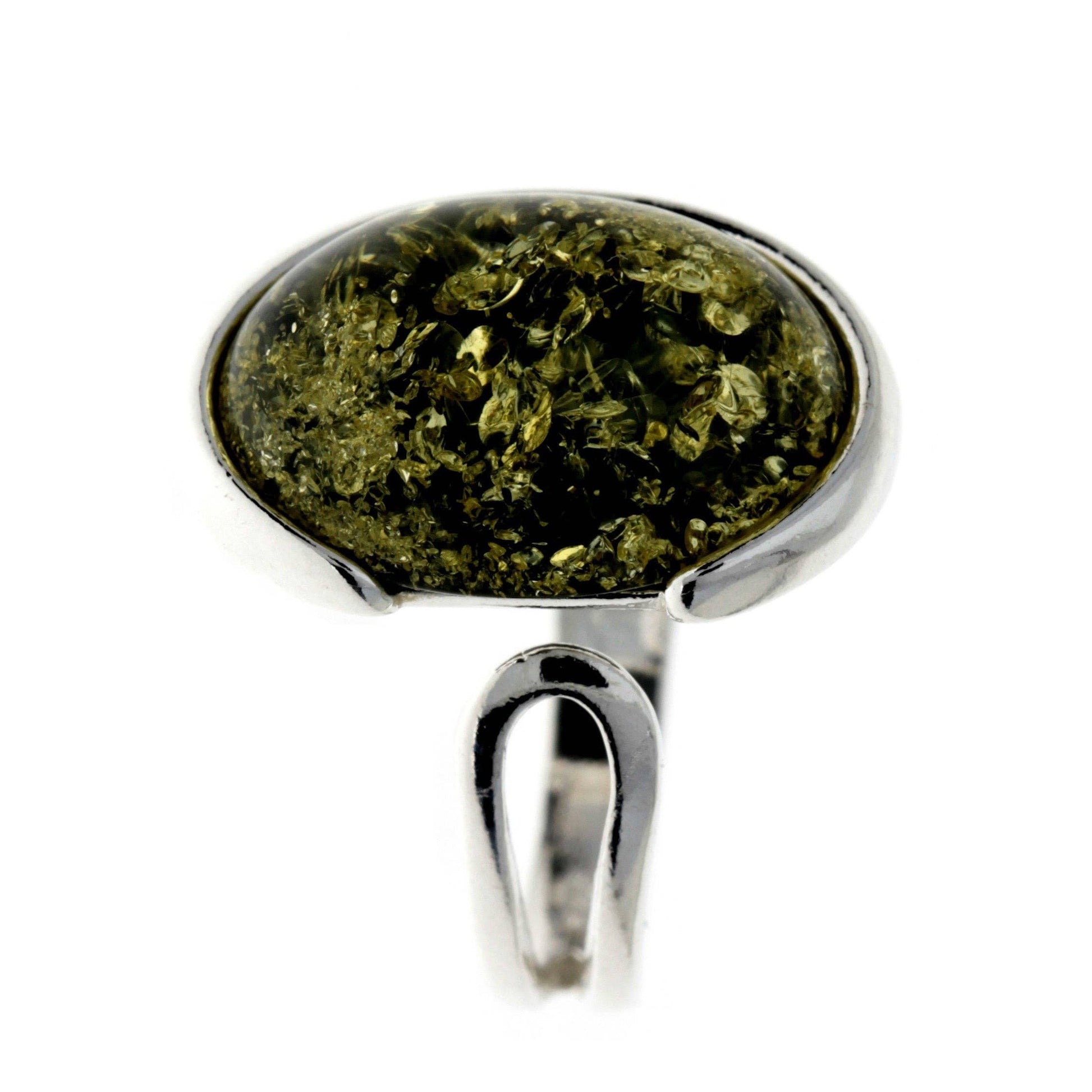 This is a beautiful Amber and Sterling Silver Exclusive Ring. The Ring is set with Best Quality Genuine Amber Gemstones. The Ring is made with 925 Sterling Silver and has got 925 stamp. Id: GL464A Material: 925 Sterling Silver Stone: Genuine Baltic Amber Stone Dimensions: 15x12 mm Ring Size: Adjustable Color: Cognac or Green
