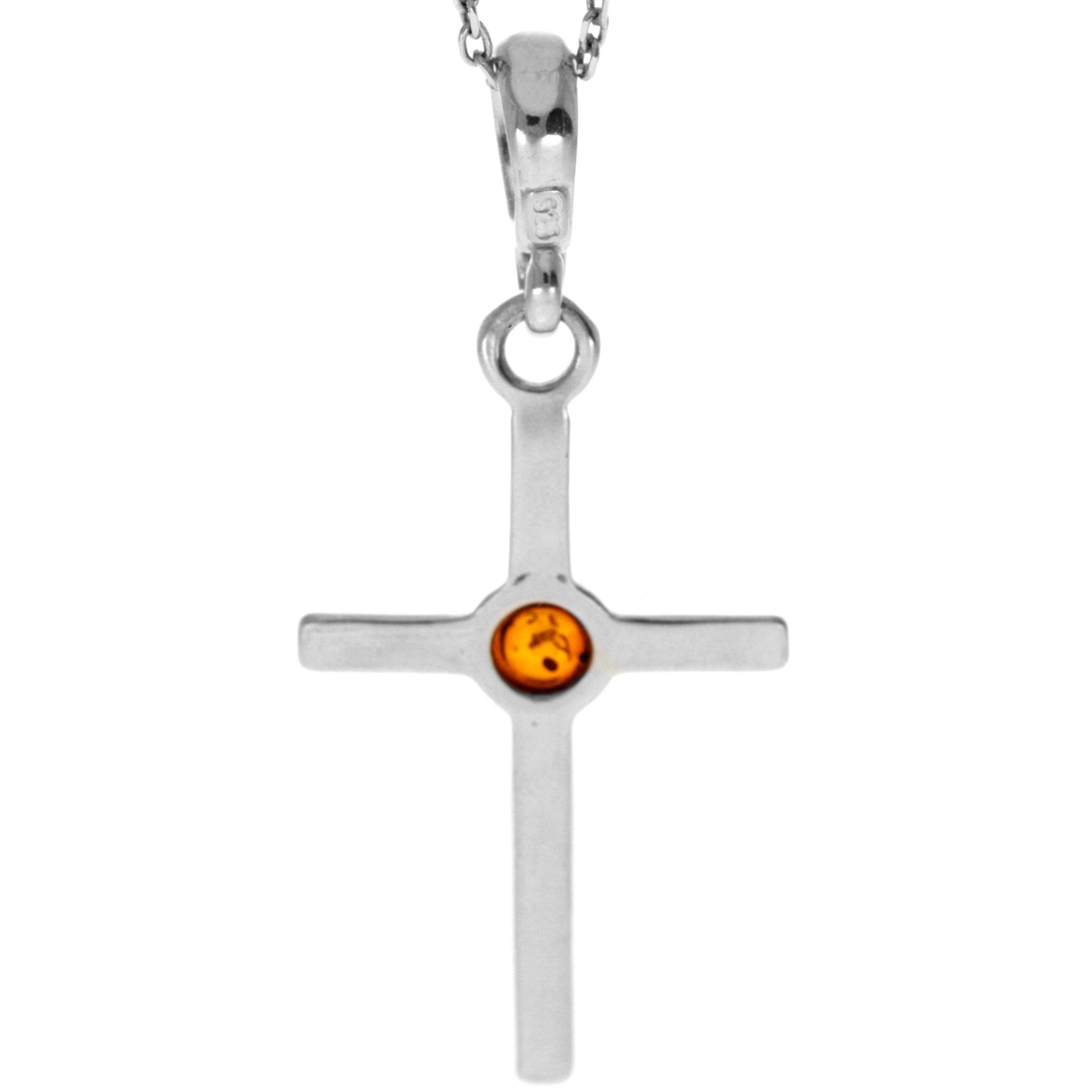 SilverAmber Jewellery - 925 Sterling Silver & Genuine Baltic Amber Classic Cross Pendant - 1987