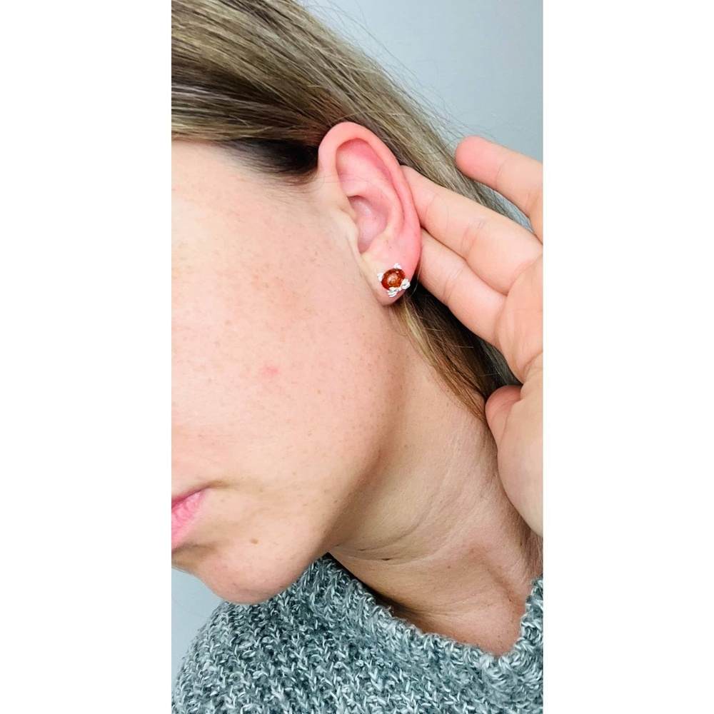 These Sterling Silver Cat Amber Stud Earrings are the perfect blend of elegance and charm. Each earring features a round genuine Baltic amber gemstone in warm cognac, deep green, or creamy yellow, set within an adorable cat face design crafted from 925 sterling silver – complete with ears, whiskers and playful detail.